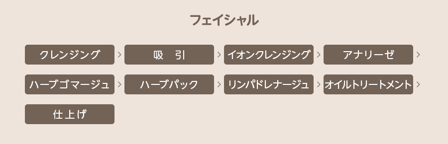 フェイシャル、上半身ボディ、手をふくむコースです。